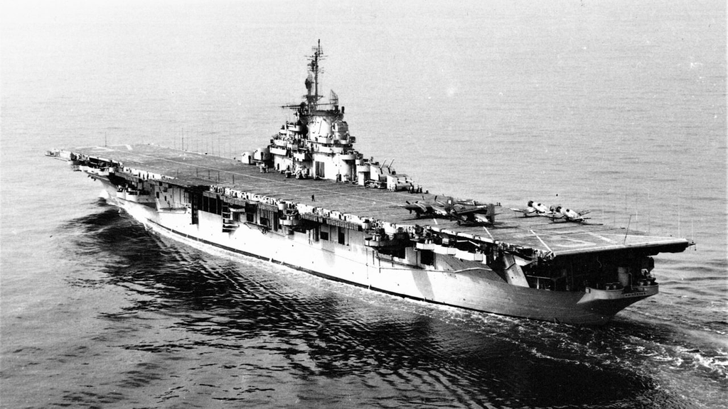 Picture of the CV-27 CMV Dubhlinnia during the battle of the Aurelian Ocean where it took severe damage, September 21st, 1944.