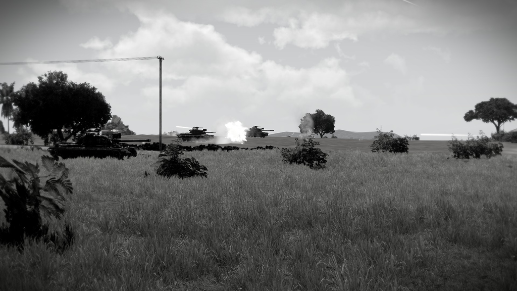 Tanks of the 64th Airborne Division engaging rebel forces on Route 71.