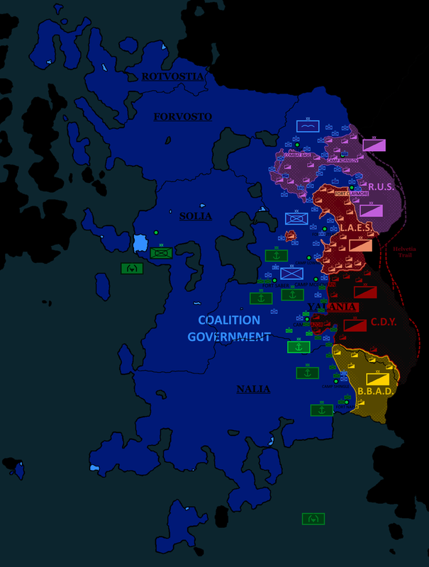 Back home, Nykea and Reveland would also collapse into civil-wars. Ciarraí would invade Reveland and its colonies to prevent the triumvirate alliance from gaining a foothold on the continent, but would allow Nykea to fall as it was weary of stretching its forces too thin.